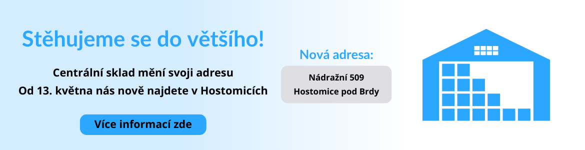 chceme Vás informovat, že se přesouváme do nového, většího centrálního skladu. Tento krok nám umožní poskytovat ještě efektivnější a kvalitnější služby, zajišťující rychlejší a spolehlivější dodávky produktů, které u nás nakupujete.
