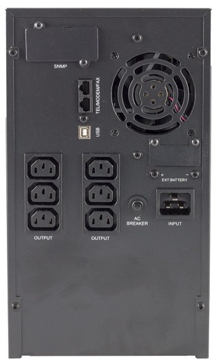 3kVA (2400W) záložní zdroj s LCD displejem. Součástí balení jsou 4x12V/9Ah akumulátory. Doba nabití akumulátorů na je 5-8h. Výkonový výstupní faktor 0,8. Tento model disponuje aktivním PFC filtrem, možností režimu ECO, nastavení výstupního napětí a mnoho dalších. Rozměry jsou 190x467x335,5mm.. Ze zadní strany vstup IEC C20, výstup 6x IEC C13, USB B, konektor pro připojením dalších bateriových sad.
