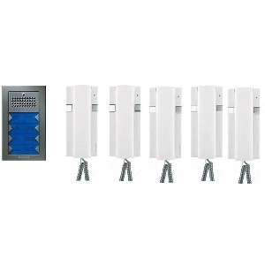 Audio System 5 účastníků, 4+1 tradiční kabeláž, Powercom venkovní panel - zápustná montáž