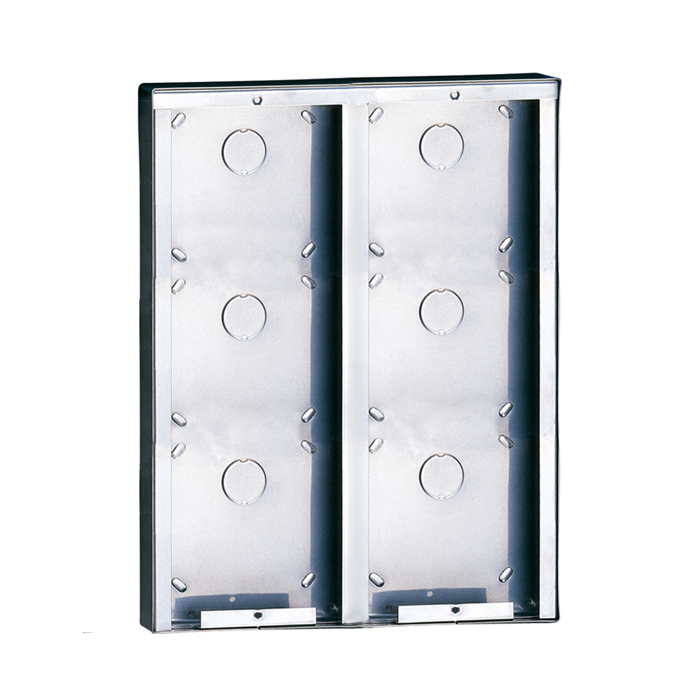 PRODEJ UKONČEN! 6-modulová povrchová nerezová montážní krabice 3316/6 pro moduly Comelit Powercom nebo IKALL. Rozměry: 249x303x32,5 mm