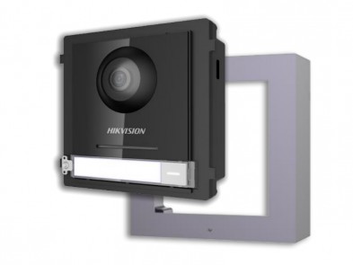 IP modulární dveřní video intercom Hikvision DS-KD8003-IME1 s jedním tlačítkem a 2MPx fisheye barevnou kamerou. Procesor Embedded MCU, Operační systém Embedded Linux OS. Maximální rozlišení kamery 1920x1080, podporovaná video komprese H.264. Podpora WDR, DNR, BLC. Úhel záběru 180°. Podpora až 8 přístupových modulů. Zabudovaný reproduktor, Audio komprese G.711U, Zlepšení kvality zvuku díky omezení šumu a ozvěny. Interkom dále disponuje 8x I/O vstup, 1x debug, 1x Tamper, 2x Relé. Ochrana IP65. Napájení 12V DC nebo PoE, Rozměry: 98x99,8x43,9mm.