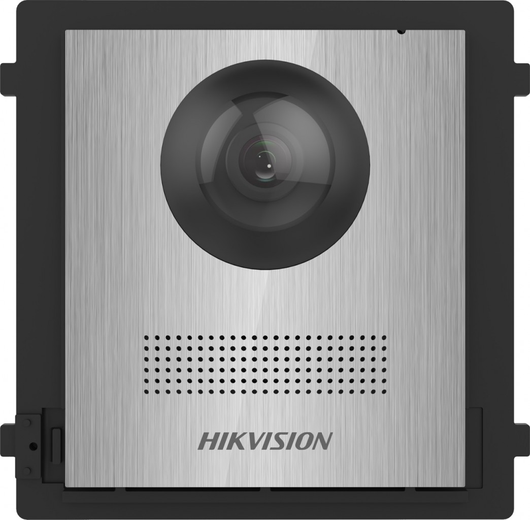 Dvoudrátový modulární nerezový dveřní video intercom Hikvision DS-KD8003-IME2/NS s 2MPx fisheye barevnou kamerou a IR přísvitem. Maximální rozlišení kamery činní 1920x1080, podporovaná video komprese H.264. Podpora WDR, DNR, BLC. Horizontální úhel záběru 180°. Podpora až 8 přístupových modulů včetně dvou relé pro ovládání zámku dveří.