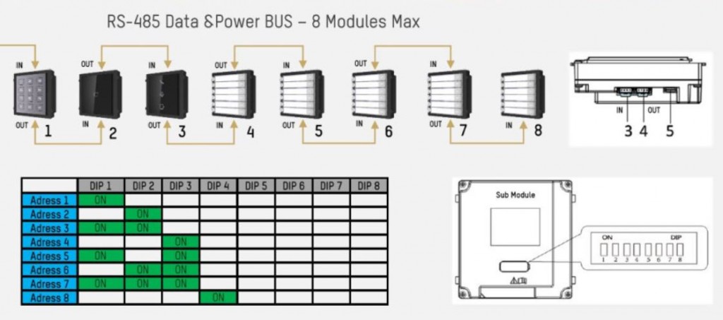Intercom dále disponuje zabudovaným reproduktorem a mikrofonem. Zlepšení kvality zvuku díky omezení šumu a ozvěny. Intercom je vybavený alarmem při neoprávněné manipulace. Ochrana IP65. Napájení 24V DC nebo 12V DC. Rozměry: 98 x 99,8 x 43,9mm. Provozní teplota -40°C až do +60°C.