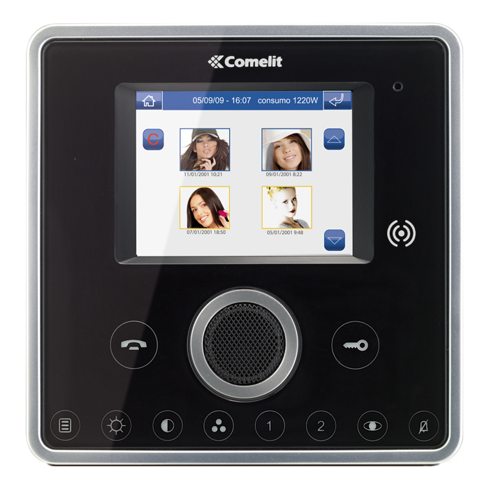 PRODEJ UKONČEN! 3,5" černý monitor Planux s pamětí pro ukládání videa na SD kartu (až 100 10-ti vteřinových klipů), dotykový displej. Vyžaduje dodatečné napájení ze zdroje 1212/B. Rozměry: 145x145x33mm
