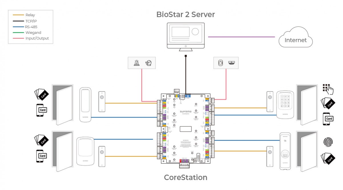 Master IP kontrolér kontroly přístupu Suprema CS-40 (1,4GHz CPU, 8GB flash+1GB RAM) podporuje čtečky Suprema i protokol OSDP pro připojení zařízení třetích stran. Kontrolér zvládne udělat až 400 000 porovnání otisků prstu za sekundu. Programuje se pomocí SW BioStar 2, s kterým komunikuje pomocí šifrovaného protokolu TLS1.2. Maximálně 132 dveří s použitím rozšiřujících modulů. Lze propojit více CS-40 do jednoho funkčního celku až do 1 000 dveří.