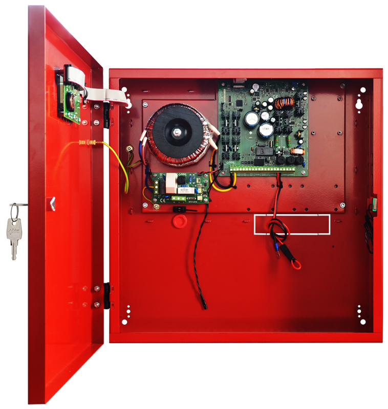 EN54-5A17LCD - EN54 27,6V/5A/2x17Ah/LCD napájecí zdroj pro protipožární systémy: