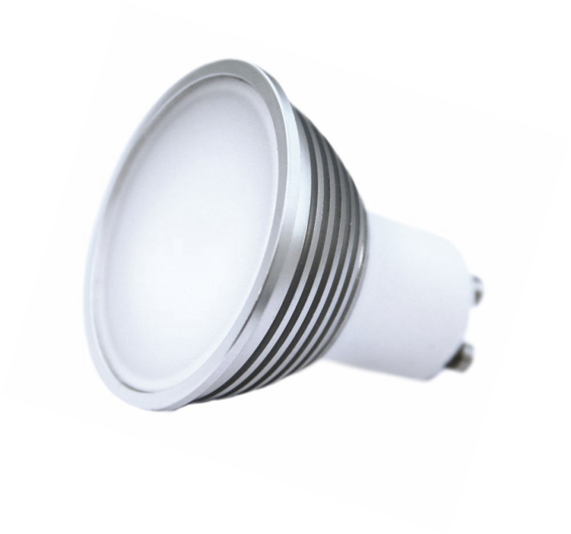 PRODEJ UKONČEN! LED žárovka GU10, 5W, 390lm, teplá bílá, opálový kryt, hliníkový korpus, 120°, rozměry 50x57mm