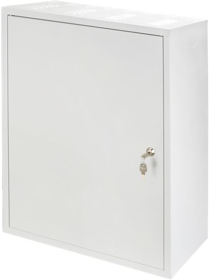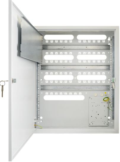 PRODEJ UKONČEN! Skříň s lištami DIN, montážní deskou a RACK 19" profily pro povrchovou montáž. Bílá. Zámek. Materiál: ocelový plech. Vnitřní rozměry: Š=450, V=645, H=177mm. Vnější rozměry: Š=540, V=650, H=205mm