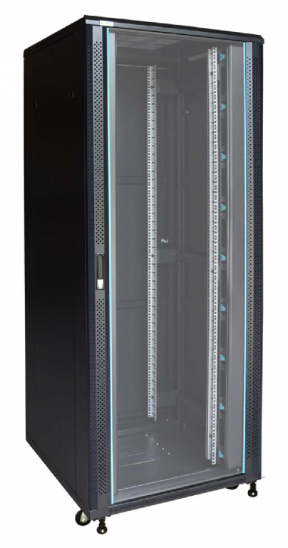 PRODEJ UKONČEN! 42U stojanový rozvaděč (Rack) RS4281GD od výrobce Pulsar o rozměrech 2055 x 800 x 1000 mm (V x Š x H), jedná se o 19“ standard s maximální nosností 800kg. Rozvaděč je určený k postavení na podlahu (nožičky a kolečka jsou součástí balení), dále nabízí stupeň krytí IP20. Rack disponuje zamykatelnými dveřmi s možností prohození směru otevírání (2 klíče součástí balení) . Přední tvrzené sklo – síla 5mm.. Vrchní díl racku je navržený tak, aby byl umožněný snadnější odvod tepla. V černém barevném provedení - RAL 9004.