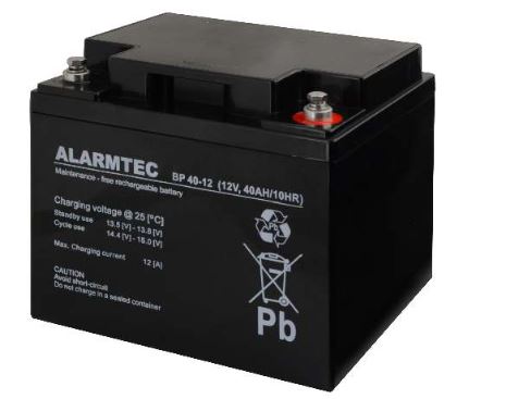 PRODEJ UKONČEN! Akumulátor 12V/40Ah, Šroub M6 Baterie vyrobená technologií AGM (Absorbed Glass Mat) je typ olověného akumulátoru, ve kterém je elektrolyt nasáknut do netkané textilie ze skelného vlákna. To vám dává výhody jako velmi nízké samovybíjení (1–3% za měsíc) a schopnost dodat vysoké proudy. Proto je tento akumulátor vhodný pro zálohu napajéní EZS a CCTV.