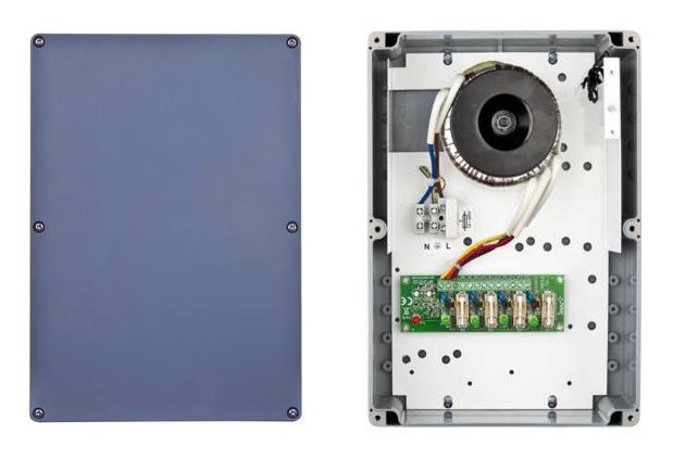 PRODEJ UKONČEN; Napájecí zdroj PSACH04244 pro 4 HD kamery s krytem ABS disponuje vstupním napětím 230VAC/50Hz a výstupním napětím 4x1A/24VAC nebo 27VAC. Ochrana zařízení je SCP, OLP*, tamper (otevření skříně). Rozměry zdroje jsou 160 x 160 x 90 mm. Skříň je určena pro povrchovou montáž se zajištěním pomocí šroubů.