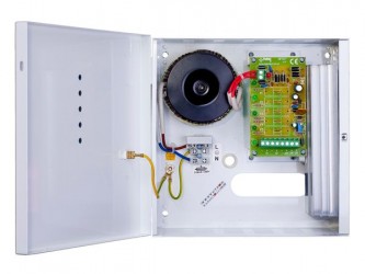 PRODEJ UKONČEN! Stabilizovaný zdroj 12V/2,5A, v krytu, 5 samostaně jištěných výstupů (0,5A skleněná tavná pojistka) s LED signalizací. Rozměry: 205 x 205 x 88 mm.