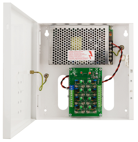 Pulsní napájecí zdroj PSDC08124 od firmy Pulsar s 8 samostatně jištěnými výstupy. Vhodný pro kamerové systémy. Kovový kryt s jednotkou zdroje a pojistkovými moduly. Vstupní napětí: 88 - 264V~. Výstupní napětí a proud: 12V= / 8 x 0,5A. Signalizace stavu výstupů pomocí LED. Tento Pulsní napájecí zdroj PSDC08124 od firmy Pulsar má ochrany SCP, OVP, OLP, ochrana napájení, ochrana přehřátí a má rozměry: 230 x 230 x 50mm.