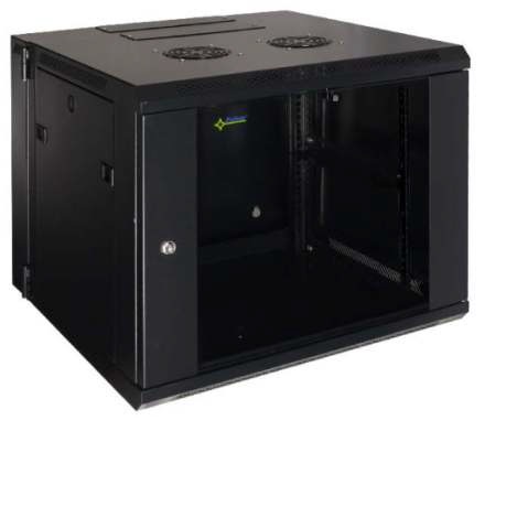 PRODEJ UKONČEN! Úložnou výšku : 9U Standard : 19" Způsob použití : nástěnný Barva : černá - RAL 9004 Nosnost : 60kg Rozměry : 501x600x600mm Dveře : přední = prosklené se zámkem - 5mm tvrzené sklo (2 klíče v balení) Balení : nesmontováno