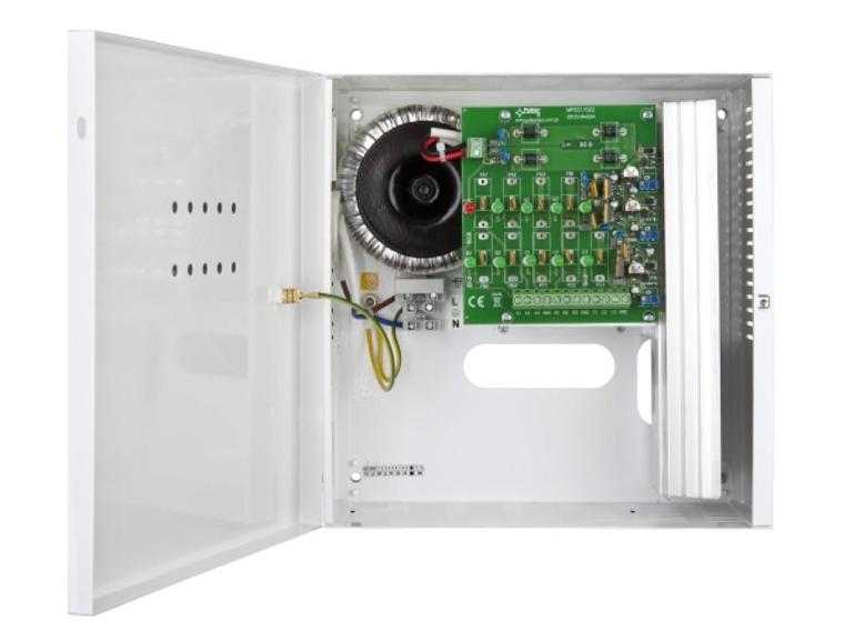PSU-S-12V/L-3,5A/9/PTC-TR-MC (235x235x98, Uout=11,0-14,0VDC, 3x adjustment groups: A,B,C, 9x 0,4A, OCP-PTC fuses, OVP-A,B,C (x3 outs), LEDx10: DC+AC)