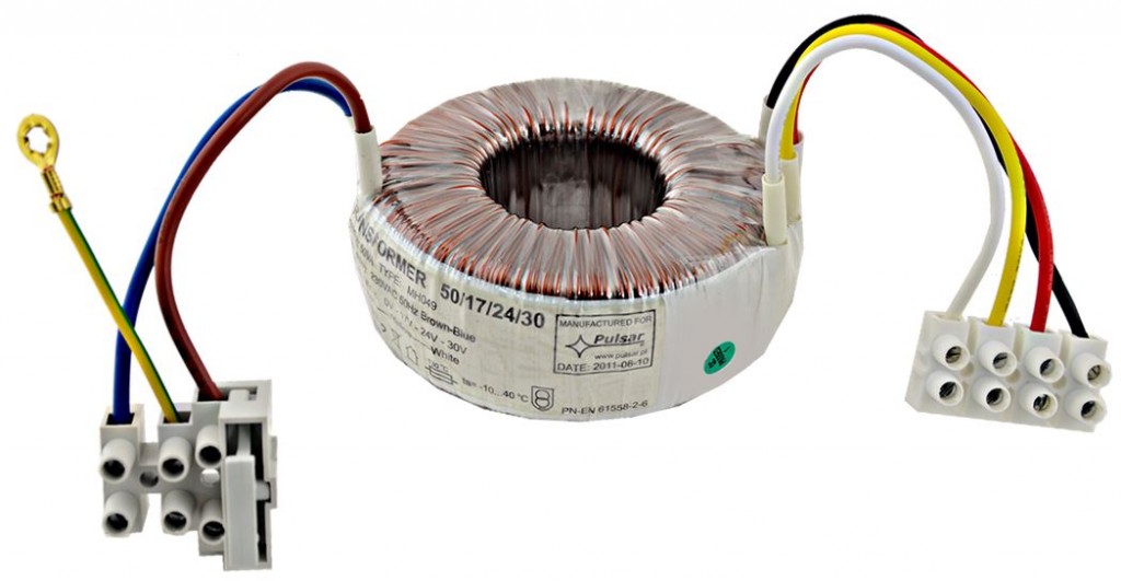 PRODEJ UKONČEN! Výkon transformátoru AWT049 je 50VA, vstupní napětí 230V/50Hz. Hodnota výstupního napětí je 17V/2.9A nebo 24V/2.1A nebo 30V/1.7A. Trafo má tepelnou pojistku s odolností 130°C. Pro montáž na DIN lištu potřebujete držák AWO467.