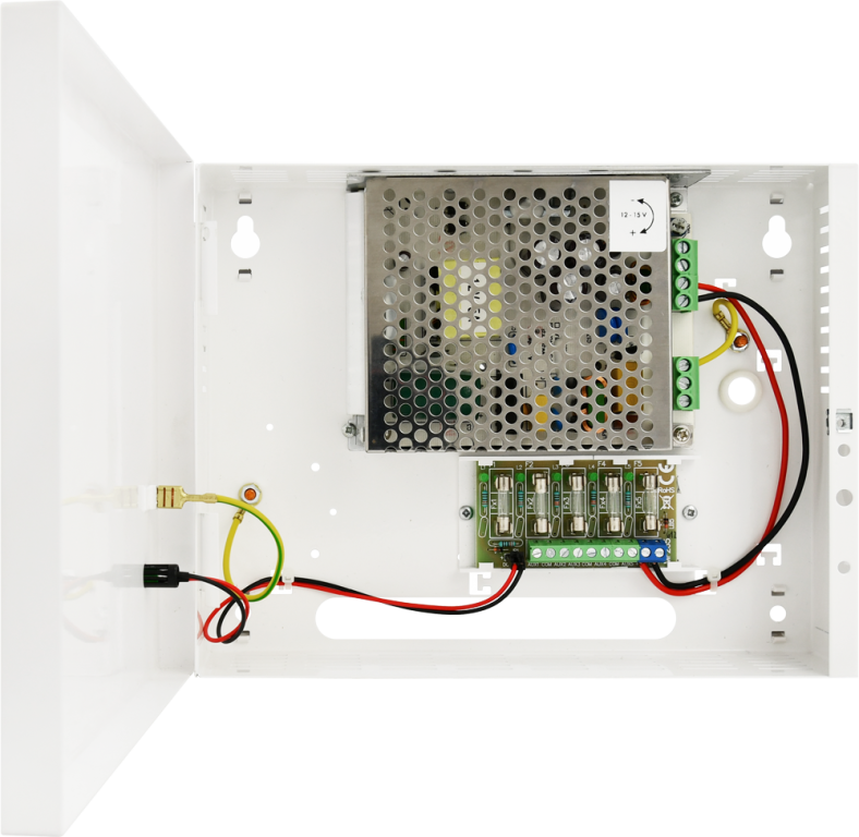 Napájecí zdroj PSDC05125T pro 5 HD kamer, vstupní napětí 85÷264VAC, výstupní napětí 5 x 1A/12VDC, rozsah regulace napětí 12÷15VDC, účinnost 80%, ochrana SCP, OLP, OVP, přepěťové, rozměry 230 x 177 x 52mm, povrchová montáž.