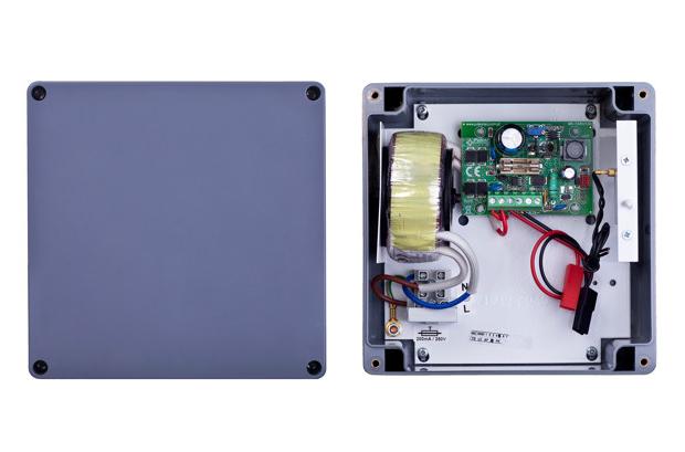 PRODEJ UKONČEN! Záložní hermetický impulzní napájecí zdroj PSBAH1012 13,8VDC/1A Prostor pro aku 1,2Ah, tamper kontakt, rozměry: 160x160x90 mm. Krytí IP65, povrchová montáž, provozní teplota 10°až +40°C Nové označení PSBSH1012A