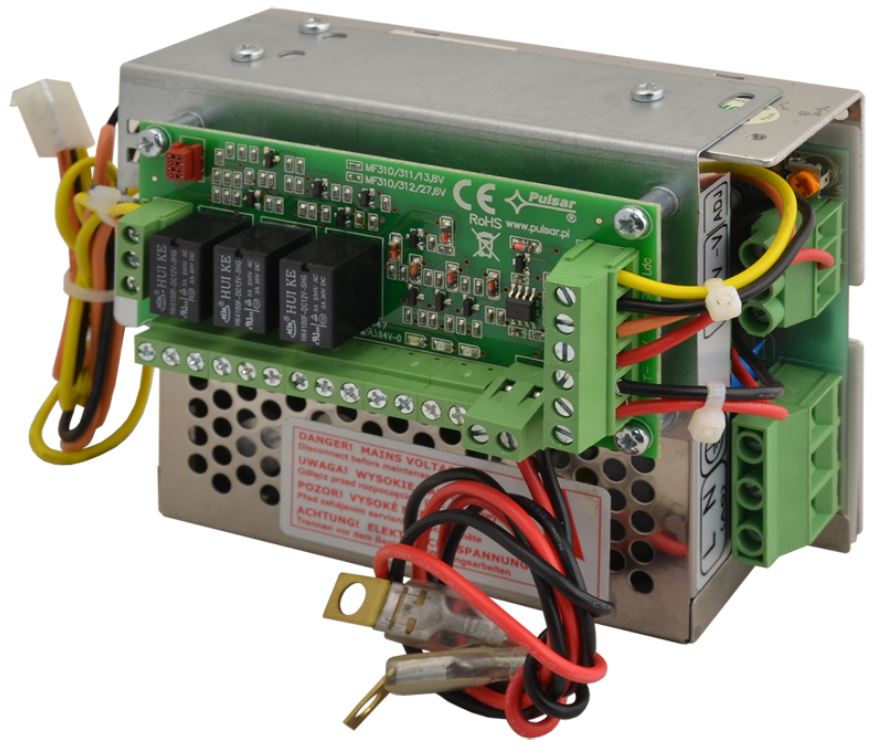 PRODEJ UKONČEN! Integrovaný zálohovaný impulsní napájecí zdroj PSBOC351225 s technickými výstupy. Disponuje vstupním napětím 176÷264VAC, a výstupním napětím 2.5A/13,8VDC. Dobíjecí proud akumulátoru je 0,5A, Účinnost je 74%, Ochrana je SCP, OVP, UVP, OLP*. Rozměry zdroje jsou W=129 L=98 H=40,5+23 mm Technické výstupy typ OC a relé: EPS - porucha sítě AC, LoB - nízké napětí akumulátoru, PSU - porucha napájecího zdroje Pro montáž na DIN lištu potřebujete držák PSDIN1.
