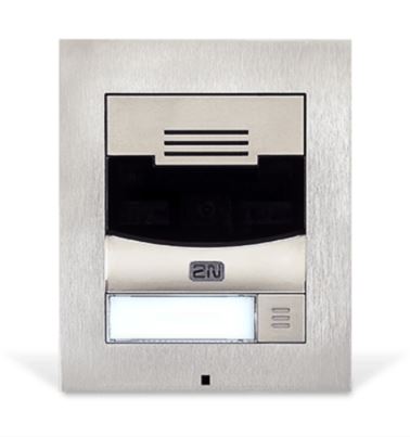 9155301CF Helios IP Solo 9155301CF v nerezovém provedení se skrytou barevnou HD kamerou, 1 tlačítkem a instalaci do zdi. Krytí IP54 a odolnost IK08.