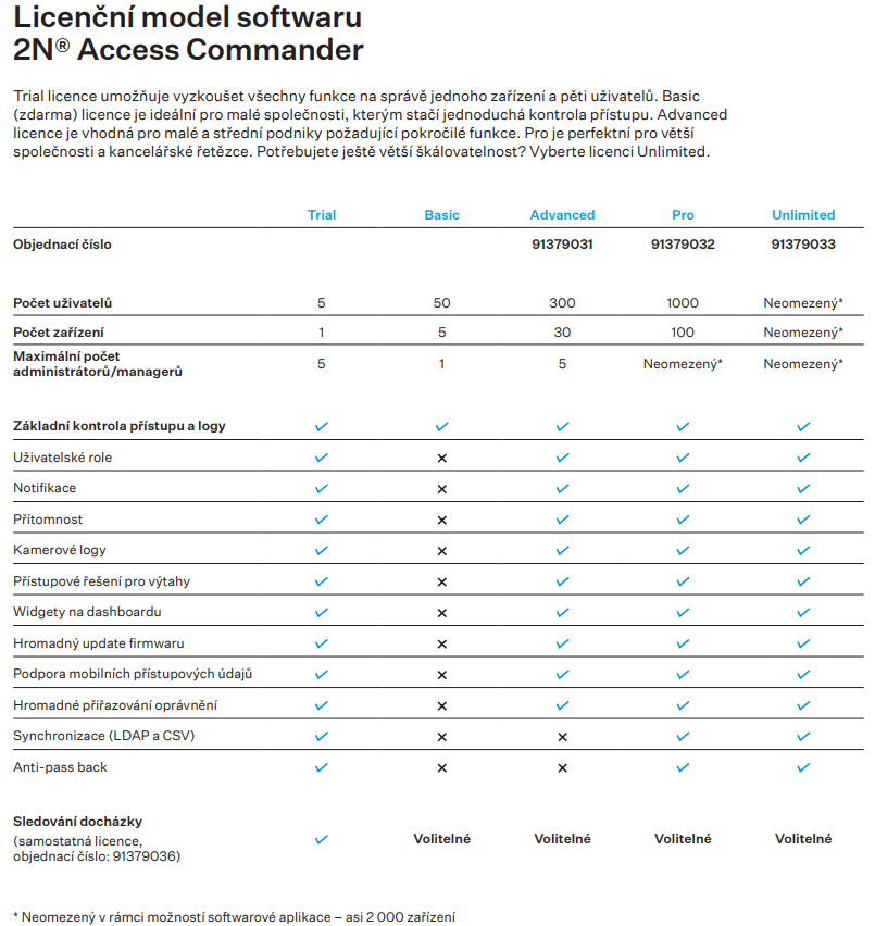 2N Access Commander je intuitivní software pro správu IP interkomů a autonomních čteček od 2N, jehož součástí je i modul docházkového systému. K přístupu do nastavení stačí libovolné mobilní zařízení či desktop. 2N Access Commander se vyznačuje jednoduchostí instalace a intuitivním ovládáním. Je určen pro zákazníky, kteří chtějí okamžitě a bez složitých školení spravovat svůj přístupový systém a evidovat docházku.