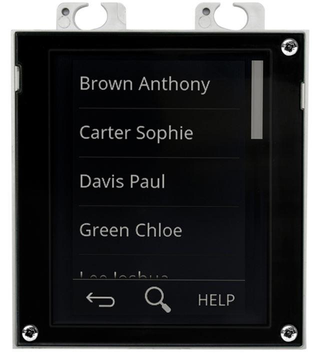 9155036, 2N dotykový displej pro tabla Helios IP Verso umožňuje návštěvníkům vybírat volané uživatele z adresáře. Kromě adresáře umí displej zobrazit i klávesnici.