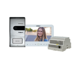 Sada Comax pro 1 uživatele. Obsahuje bílý 4,3" videotelefon CDV-43K2 na 230VAC a celokovové tablo DRC-40K pro povrchovou montáž. Lze rozšířit až na 3 telefony připojené paralelně.