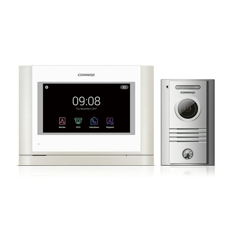 Sada 7" AHD handsfree videotelefonu a kovové 1.3 Mpx dveřní kamerové jednotky.