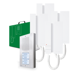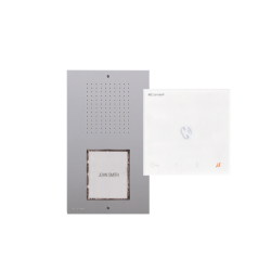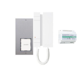 Barevný videokit pro 1 uživatele s tablem QUADRA (odolnost IK08, rozměry 95x195x28 mm) a hansfree videotelefonem Mini s indukční smyčkou pro nedoslýchavé.