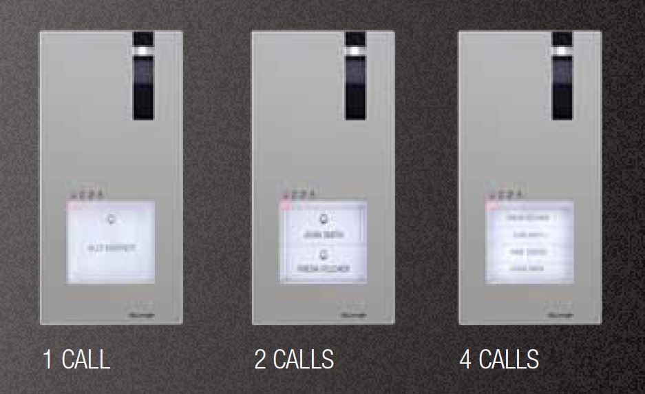 Barevný videokit pro 1 uživatele s tablem QUADRA (odolnost IK08, rozměry 95x195x28 mm) a 4,5" 16/9 monitorem MINI se sluchátkem. Kabeláž simplebus Building Kit (pouze 2 vodiče pro komunikaci i napájení). Možnost rozšířit až na 4 uživatele bez nutnosti měnit tablo.