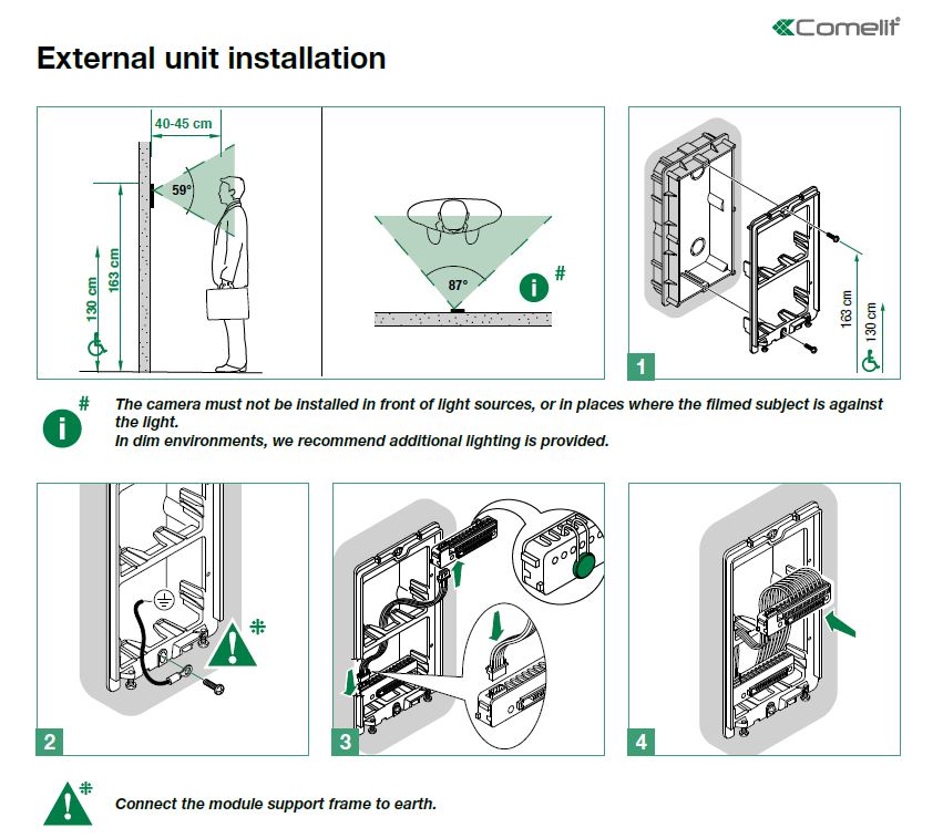 Audio/Video hovorová jednotka IKALL s barevnou kamerou pro 2 vodičovou kabeláž Simplebus. Rozměry: 102x55x38 mm. Kompatibilní pouze se zdroji 1209, 1210, 1210A!