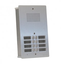 Audio zapustný vstupní panel z eloxovaného 4mm hliníku s 52 tlačítky pro audio modul IKALL. Zápustná krabice z pozinkovaného ocelového plechu včetně objímek na žárovky (žárovky nejsou součástí).