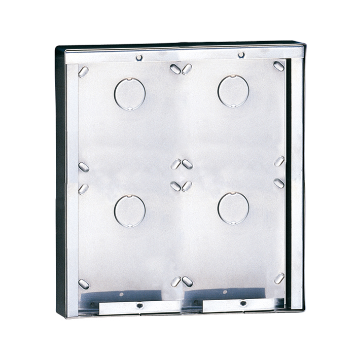 DOPRODEJ 4-modulová povrchová nerezová montážní krabice 3316/4 pro moduly Comelit Powercom nebo IKALL. Rozměry: 249x213x32,5mm