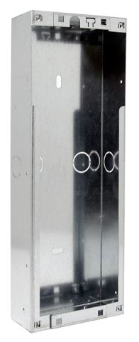 Zapuštěná ocelová montážní krabice pro SWITCH panely s 5, 6, 7 a 8-mi tlačítky (IX0105, IX0106, IX0107 a IX0108). Rozměry (š x v x h): 124 x 343,1 x 56 mm.