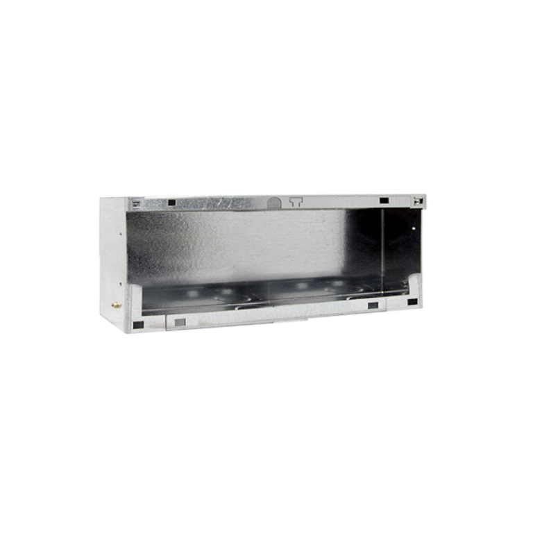Zapuštěná ocelová montážní krabice pro přídavnou čtečku k panelům SWITCH s tlačítky ve 4 řadách. Rozměry: 383 x 110,5 x 56 mm.
