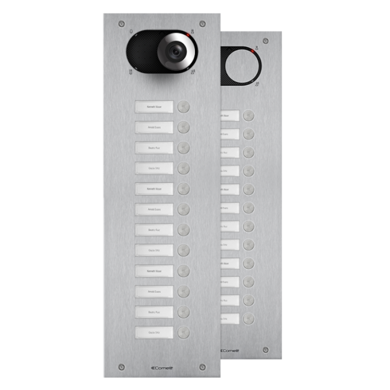 12-ti tlačítkový 2,5mm nerezový panel Switch včetně adaptéru pro umístění audio nebo video hovorové jednotky IKALL (Simplebus/VIP). Tlačítka s bílým podsvícením kompletně namontována a zapojena. Výměna jmenovek z přední části bez nutnosti demontáže celého panelu. Odolnost IK08, nutno zkompletovat s instalační krabicí (povrchová/zapuštěná IX9152) Rozměry: 150x475,5x2,5 mm
