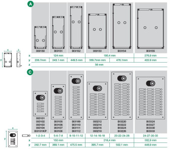 16-ti tlačítkový (2x 8 tlačítek) 2,5mm nerezový panel Switch včetně adaptéru pro umístění audio nebo video hovorové jednotky IKALL (Simplebus/VIP). Tlačítka s bílým podsvícením kompletně namontována a zapojena. Výměna jmenovek z přední části bez nutnosti demontáže celého panelu. Odolnost IK08, nutno zkompletovat s instalační krabicí (povrchová XI9163/zapuštěná IX9153) Rozměry: 216,4x395,7x2,5 mm