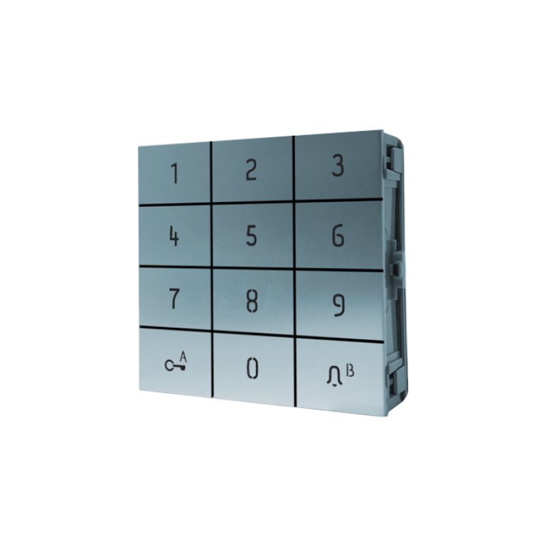 Stříbrná klávesnice ULTRA s wiegand výstupem. Lze využít pro volání (bez UT9260M pouze 3 místný volací kód !) nebo otevření dveří pomocí kódu (4-6 čísel). Anodizované hliníkové tlačítka, automatické podsvícení na základě osvětlení senzoru v hovorové jednotce.