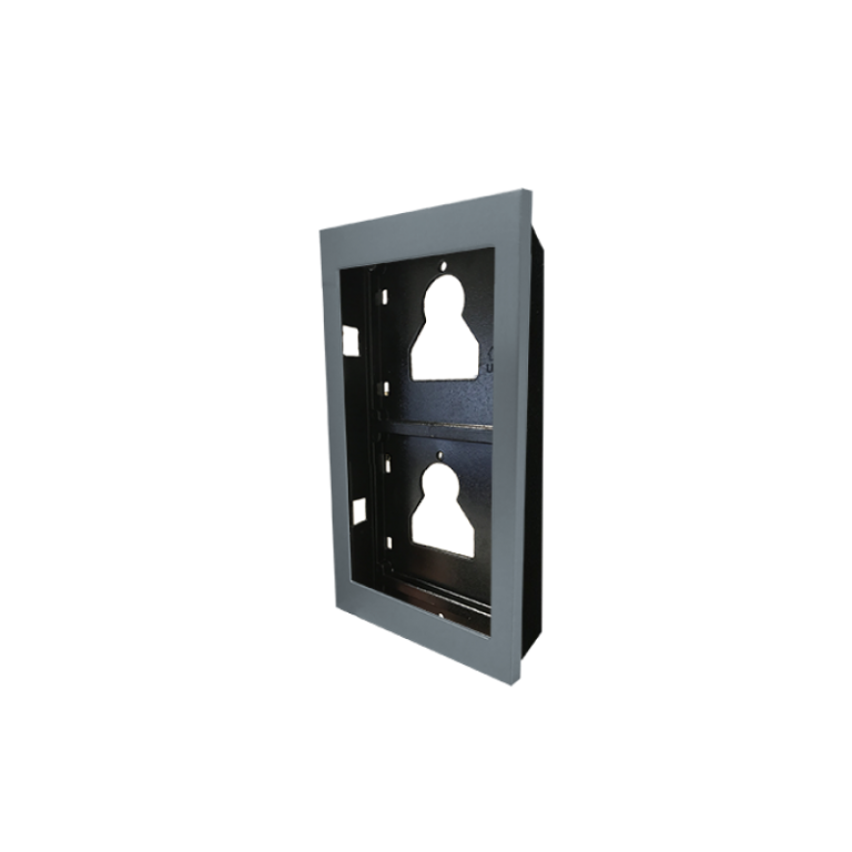 2 modulový stříbrný zapuštěný kovový instalační rámeček ULTRA. Výška jen 10 mm od zdi. Vyžaduje instalační box 3110/2 nebo 3110/2A. Rozměry: 125,5x226,5x35mm.