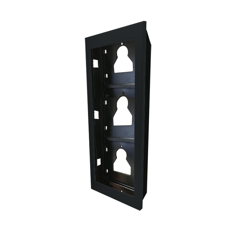 3 modulový černý zapuštěný kovový instalační rámeček ULTRA. Výška jen 10 mm, vyžaduje instalační box 3110/3 nebo 3110/3A. Rozměry: 125,5x317,5x35mm
