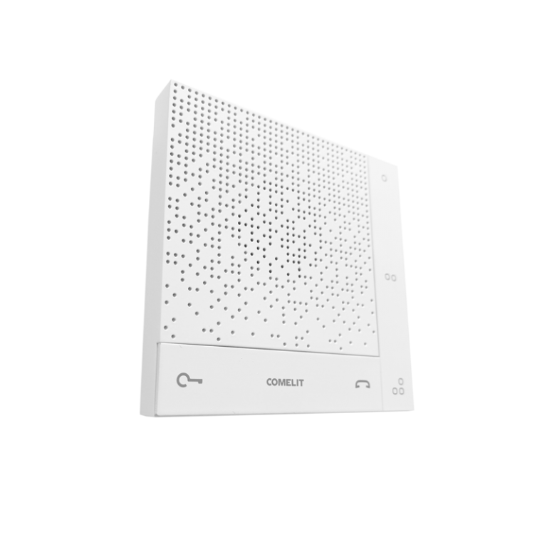 Vnitřní bílý VIP hands-free audiotelefon Sonus. Povrchová montáž, možnost nastavit funkci automatického otevření dveří po zazvonění (Doktor) a automatického zvednutí hovoru.Tichý režim Nerušit s LED indikací. Mechanická tlačítka.