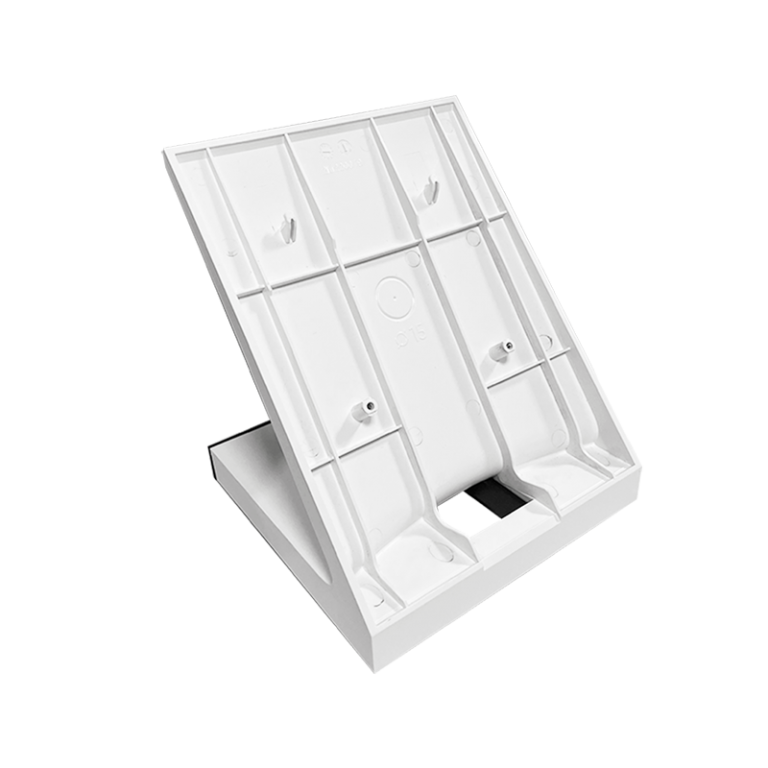Stolní bílý plastový držák AC6732 pro monitory People. Rozměry: 136x110x123 mm