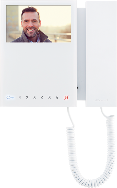 Barevný 4,3" monitor Mini se sluchátkem a 8-mi tlačítky pro systém Comelit Simplebus včetně terminálu 1214/2C. Bílé provedení, 8 dotykových tlačítek. Rozměry: 175x160x22mm.