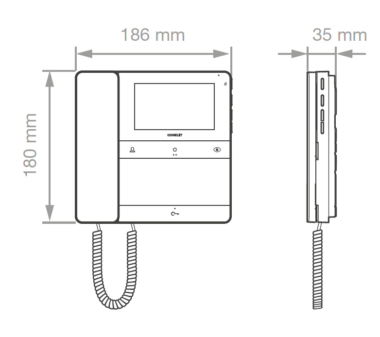 Inovativní video telefon People se sluchátkem (uchycení pomocí silného magnetu) a 4,3" TFT displejem 16:9 pro systém Comelit Simplebus 2. Programování lze provést přes vnitřní menu na displeji a nebo pomocí aplikace MyComelit. Obal vyrobený z recyklovaného papíru, potisky vodou ředitelnou barvou, maximálně šetrný k životnímu prostředí.