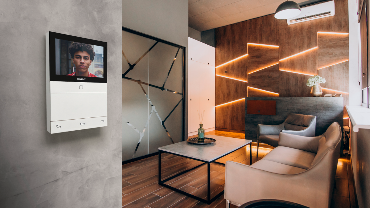 Inovativní Hands free video telefon People s 4,3" TFT displejem 16:9 pro systém Comelit Simplebus 2. Programování lze provést přes vnitřní menu na displeji a nebo pomocí aplikace MyComelit. Obal vyrobený z recyklovaného papíru, potisky vodou ředitelnou barvou, maximálně šetrný k životnímu prostředí.