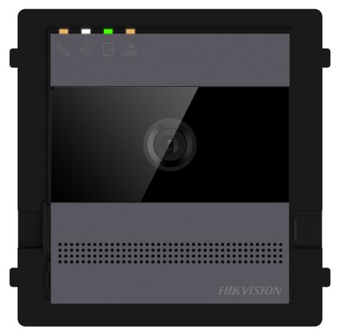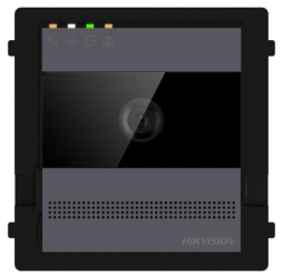Dvoudrátový HD modulární dveřní video intercom Hikvision DS-KD7003-IME2 s 2MPx (1920x1080) fisheye barevnou kamerou. Možnost 1 tlačítko, 2 tlačítka nebo bez tlačítka. Povrchová i zápustná montáž dle typu rámečku (příslušenství).
