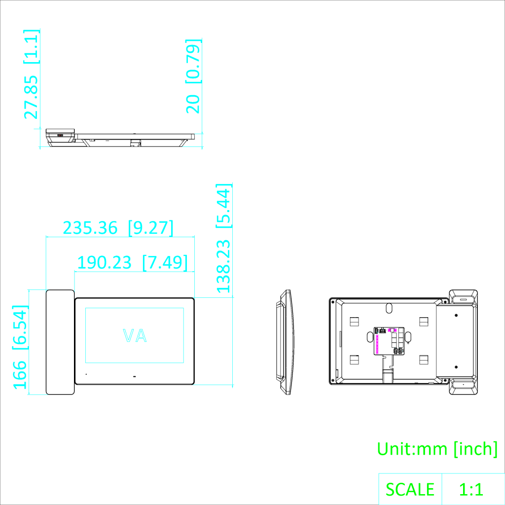 Dvoudrátový vnitřní video-interkom Hikvision DS-KH7300EY-WTHE2 s dotykovým 7" LCD displejem s rozlišením 1024x600, nechybí ani 3 fyzická tlačítka k jednoduchému ovládání a resetovací tlačítko. Zařízení běží na operačním systému Linux s pamětí 128MB a je vybaveno vestavěným mikrofonem a reproduktorem. Audio komprese G.711U, 64Kbps, Zlepšení kvality zvuku díky omezení šumu a ozvěny. Nechybí ani nastavitelná hlasitost a podpora sluchátka. Dále zařízení disponuje alarmovým vstupem a slotem na SD kartu do 128 Gb, Síťová komunikace pomocí Wi-Fi 2.4 GHz. Napájení 48V pomocí jednotky DS-KAD7060EY nebo DS-KAD7061EY. Provozní teplota od -10°C až +50°C. Rozměry 190.2 × 138.2 × 20 mm. Povrchová instalace.