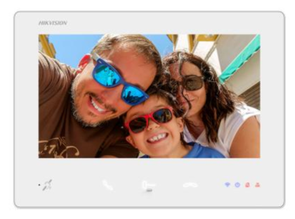 Dvoudrátový vnitřní video-interkom Hikvision DS-KH7300EY-WTIE2 s 7" barevným dotykovým TFT displejem s rozlišením 1024x600, nechybí ani 3 dotyková tlačítka(Odpovědět, odemknout, zavěsit) a 1 fyzické tlačítko (reset) k jednoduchému ovládání. Zařízení běží na operačním systému Linux s pamětí 128MB a je vybaveno vestavěným mikrofonem a reproduktorem.