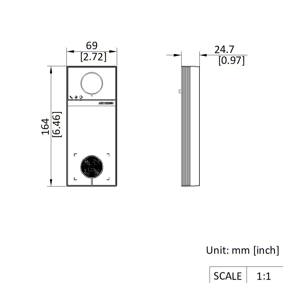 IP videovrátník DS-KV6114-ME1 určený pro rodinné domy nebo menší objekty. Je to venkovní "villa" jednotka s kamerou, čtečkou karet a funkcí odemčení dveří - tedy moderní domovní telefon / dveřní videotelefon.