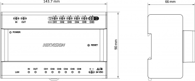 Distributor DS-KAD706Y Hikvision pro dvoudrátové audio-video interkomy. 2 vstupy pro připojení dalších distributorů a 6 vstupů pro monitory. Optická signalizace pro každý vstup.1x RJ45 pro připojení LAN.